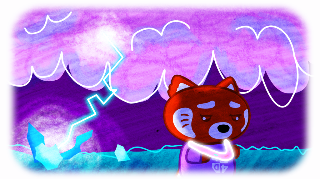 La tormenta seguía rugiendo. Melanie, Ember y Limo avanzaban con cuidado, midiendo cada paso entre descargas que iluminaban la llanura como relámpagos pintando el cielo roto. Intentaban buscar a Sweet, pero los cristales y la intensidad de los rayos les impedían usar sus habilidades al máximo. Cada intento de volar, saltar o proyectar energía era interrumpido por el miedo de recibir una descarga directa.