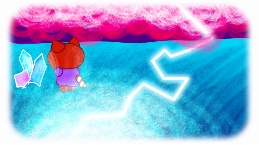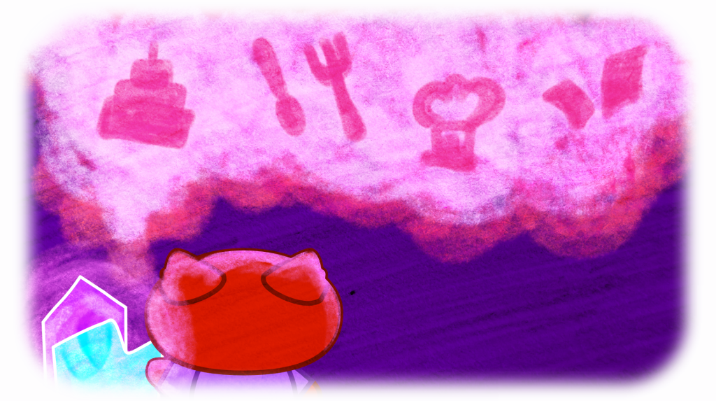 Primero fueron las calles ordenadas y edificios que parecían pasteles gigantes con glaseado perfecto. Cada tienda, cada puesto de dulces, exponía una perfección que Sweet debía replicar: los macarons alineados, los chocolates sin mancha, los pasteles decorados con exactitud quirúrgica. Luego vinieron los gestos precisos y ensayados, las sonrisas obligadas, la aprobación que debía ganarse con cada movimiento. Sweet intentaba apartar la mirada, pero los cristales la rodeaban como una jaula, intensificando cada recuerdo. Cada rayo que golpeaba el suelo generaba más cristales que la envolvían, atrapándola más y más.