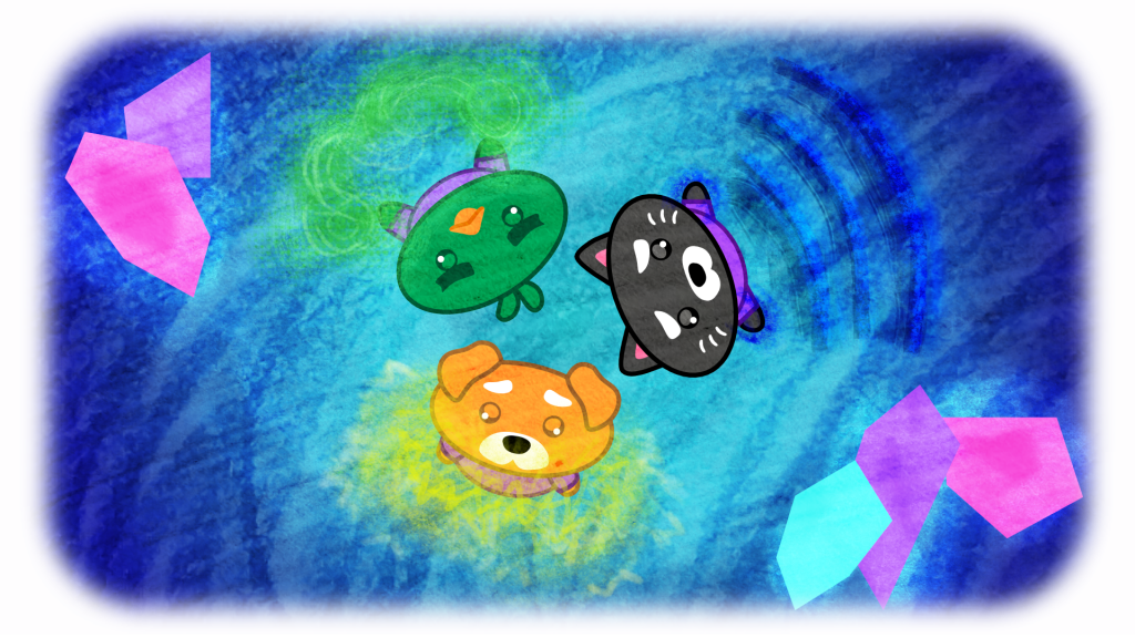 Las luces extrañas que había visto parpadear a lo lejos comenzaron a tomar forma: eran Melanie, Ember y Limo, usando sus habilidades y reflejos para crear señales de luz, formando un camino que Sweet reconoció al instante.