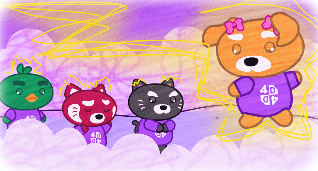 De pronto, un zumbido veloz cortó el aire. El grupo se tensó al instante. De la niebla salió disparada una figura amarilla, apenas distinguible por lo rápido que se movía. Se detuvo de golpe frente a ellos, sacudiendo el polvo a su alrededor. Era un perro amarillo, con energía desbordante en cada movimiento.