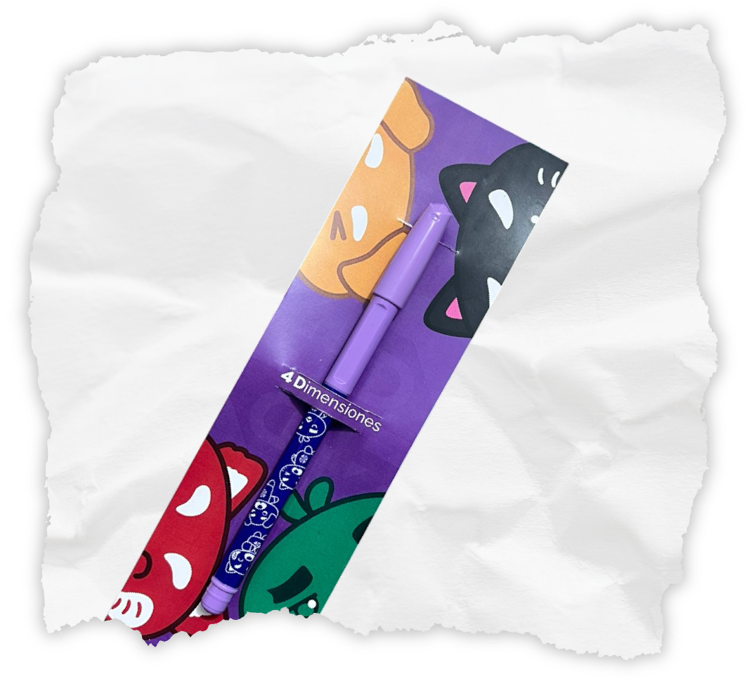 Cada diseño está inspirado en los personajes de 4 Dimensiones, de tinta azul punta fina.