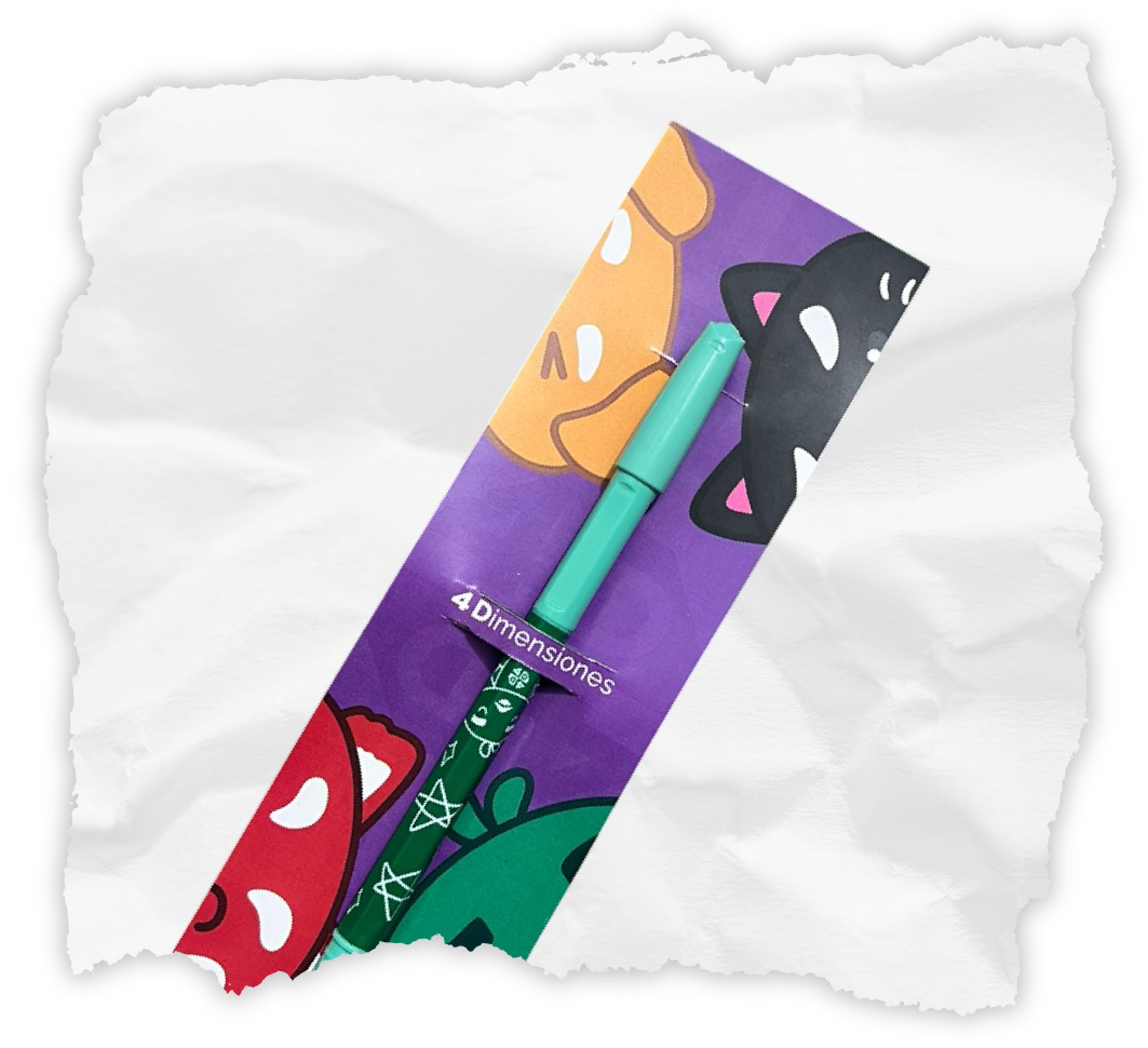 Cada diseño está inspirado en los personajes de 4 Dimensiones, de tinta azul punta fina.